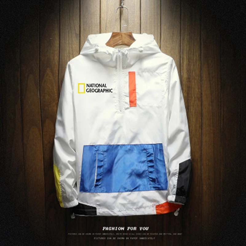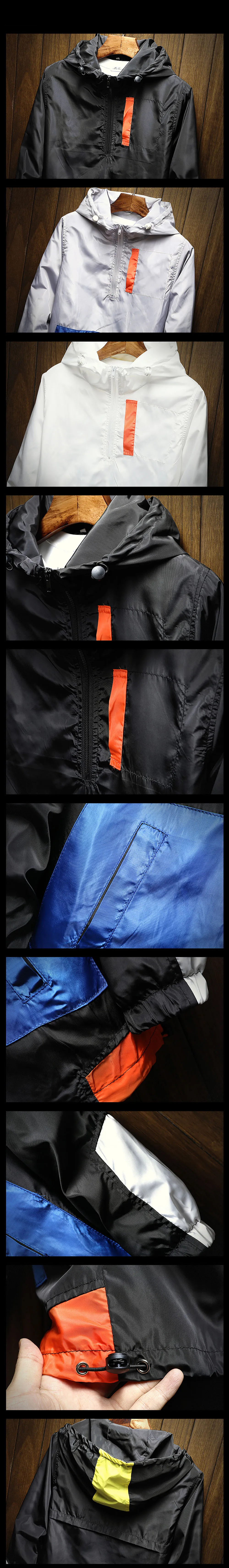 Новинка 2021, Мужская демисезонная куртка на молнии, повседневная куртка-бомбер с капюшоном, модная Лоскутная ветровка, мужская куртка, одежда