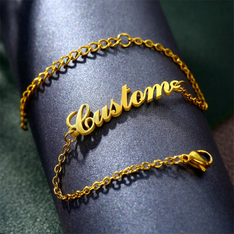 Индивидуальные браслеты из нержавеющей стали с именем золотого цвет...