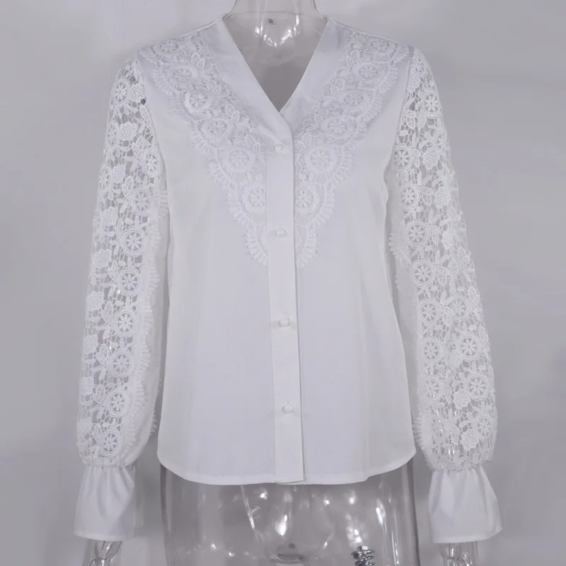Элегантная кружевная рубашка, модные блузки 2022, ажурные женские р...