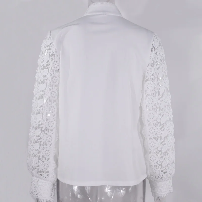 Женская блузка с длинным рукавом, кружевная, белая, повседневная, д...