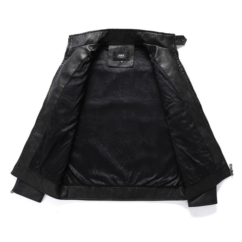 Кожаная куртка мужская зимняя флисовая мотоциклетная куртка из иску...