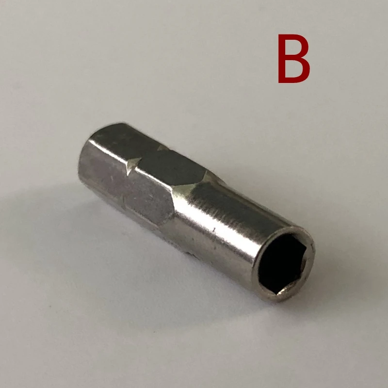 Занимает 1/4 ”биты, и вы хотите использовать 4 мм биты. Адаптер A & B для вас.