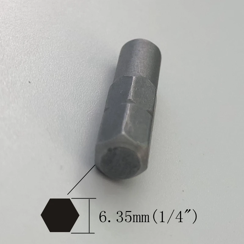 Или размер держателя ручки отвертки составляет 1/4 дюйма/6,35 мм, и вы хотите использовать биты 4 мм для работы.