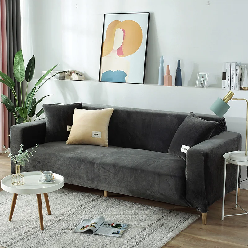 Бархатный плюшевый чехол для дивана, растягивающийся большой эласти...