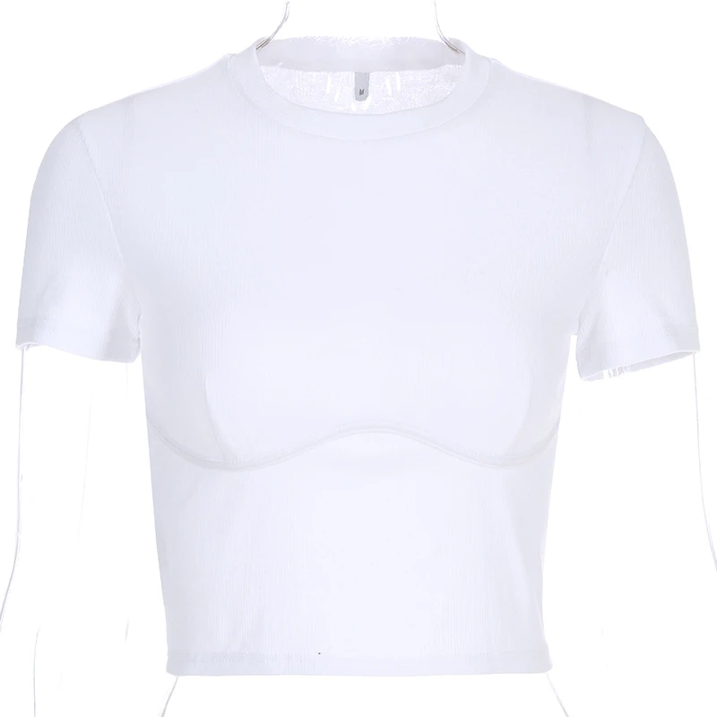 Базовая белая футболка, элегантная женская футболка с коротким рука...