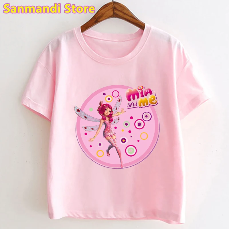 Красивая розовая детская одежда с изображением Миа и я эльфа, футболка с мультяшным принтом для девочек, милая детская одежда, рубашка в стиле Харадзюку, уличная одежда
