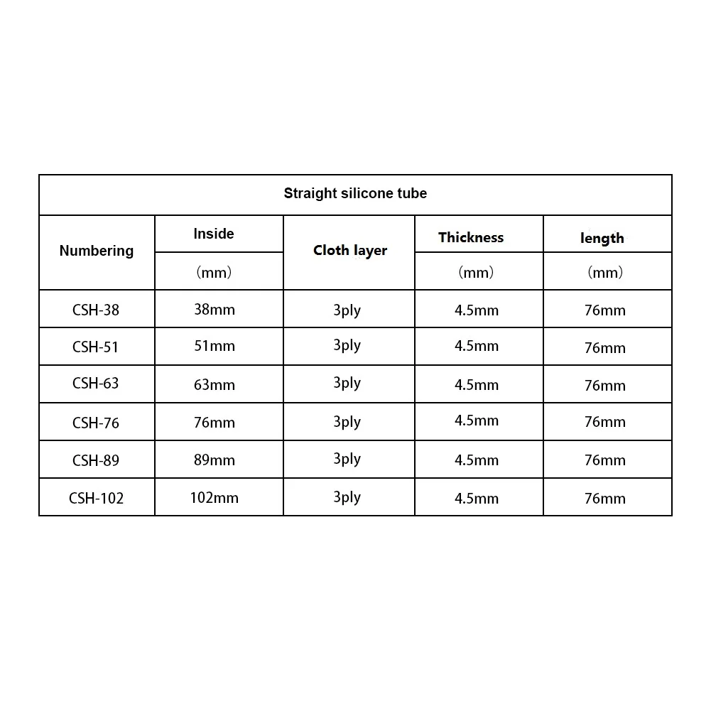 3-слойный усиленный Прямой силиконовый соединительный шланг, 102 мм89 мм76 мм63 мм51 мм38 мм, 4 дюйма, впускная турбо-трубка, черный