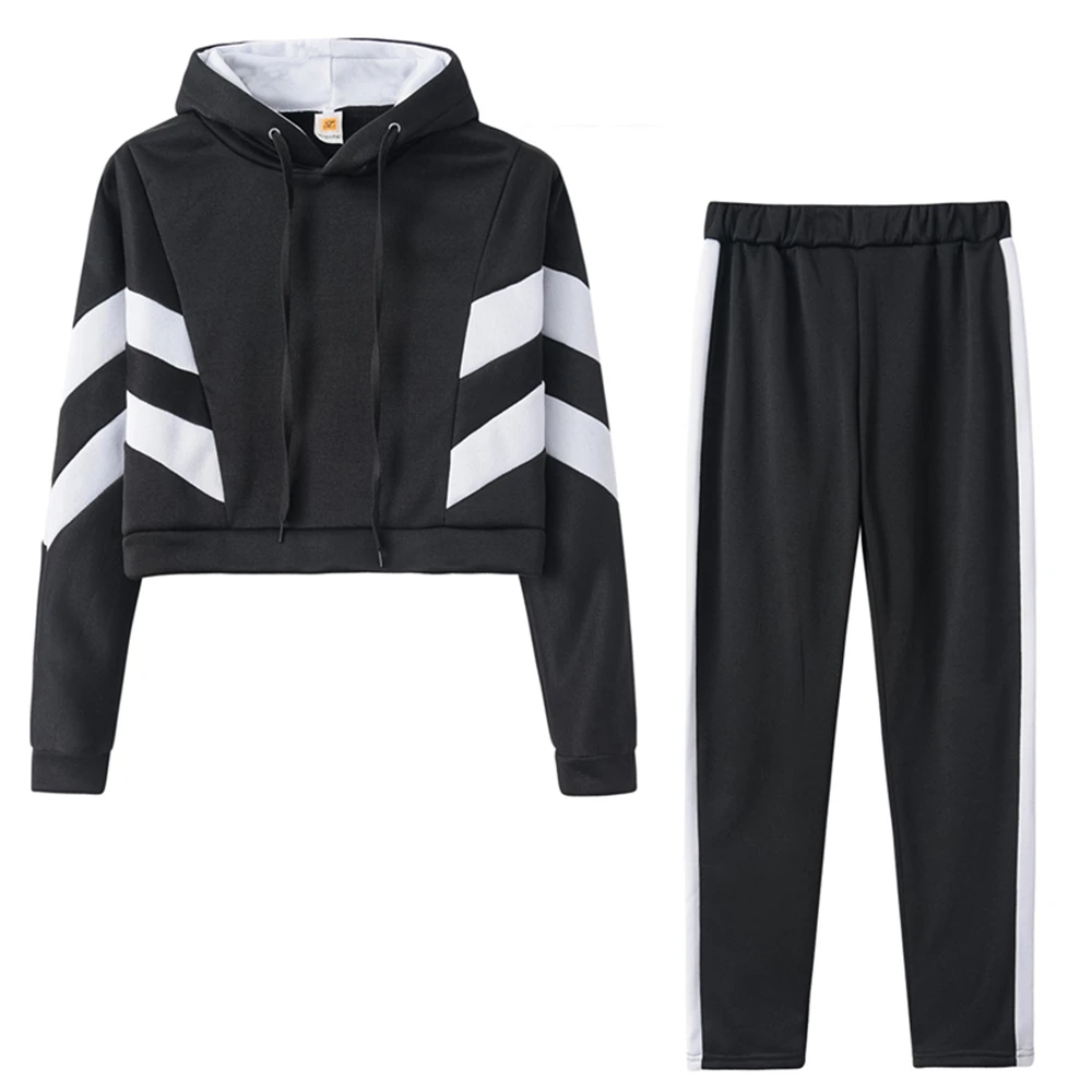 Комплект из 2 предметов, женский спортивный костюм с капюшоном, осенний короткий топ, спортивный костюм, модная одежда для спортзала, полосатая спортивная одежда, женская одежда для бега, оптовая продажа