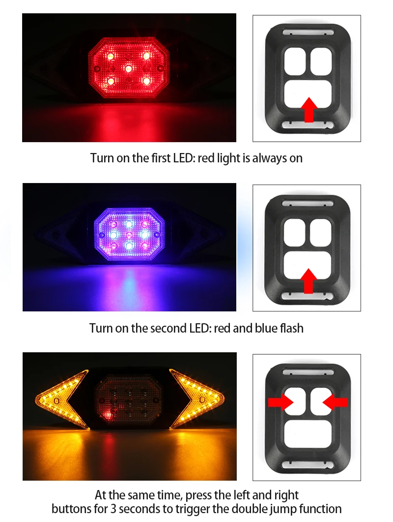 Безопасно ездить: через дистанционный пульт интеллигентая (ый) указатели поворота, то, что вы могли бы дать на обратной стороне транспортным средством светильник сигнала подсказки для влево или вправо рулевого упаковки и торможения для того, чтобы обеспечить более высокий уровень безопасности.