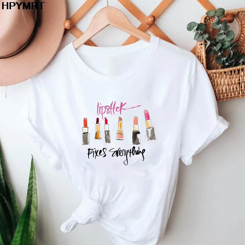 Женская футболка с принтом макияж в моем Альте и помадой, женская летняя футболка в стиле Харадзюку, женские хипстерские футболки с коротким рукавом для женщин