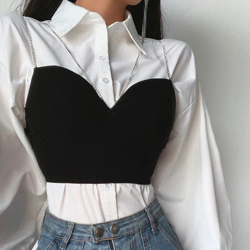 УКОРОЧЕННЫЙ ТОП стразы на бретельках с цепочками, женский сексуальный черный топ с V-образным вырезом и открытой спиной, летняя приталенная бюстье в стиле Харадзюку, корсет, жилет