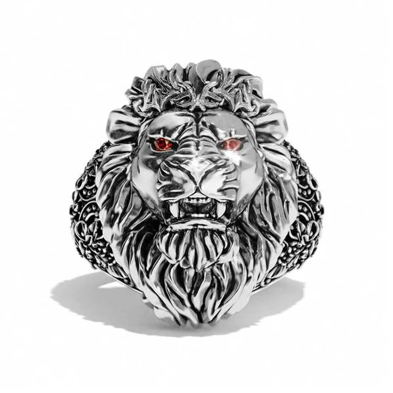 Мужское кольцо в виде головы льва, серебряное, цвет в ассортименте