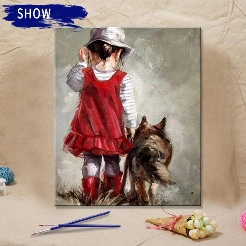 RUOPOTY картина маслом по номерам с рамкой, маленькая девочка в тра...