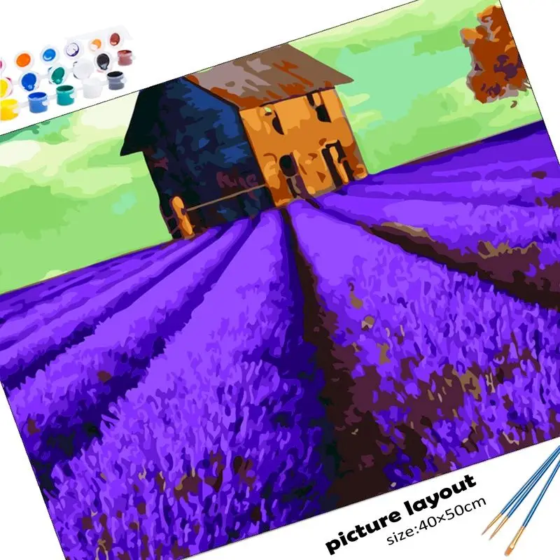 Diy Краски ing по номерам с изображением сказочного лавандового поля масло Краски по номерам комплект натуральный на холсте Ручная Краски ed настенные картины подарок Декор для дома