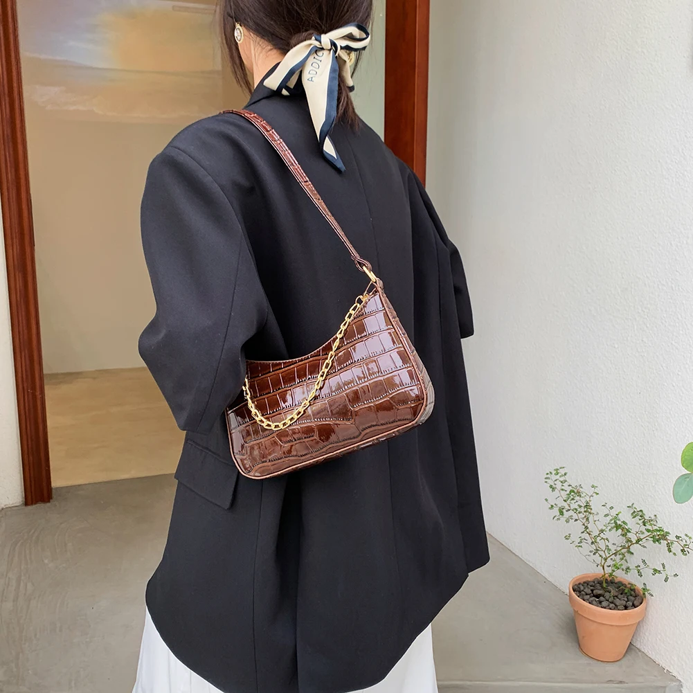 Женские сумки, роскошная сумка-мессенджер из искусственной кожи с цепочкой и узором под аллигатора, винтажные дамские сумки, однотонные сумки