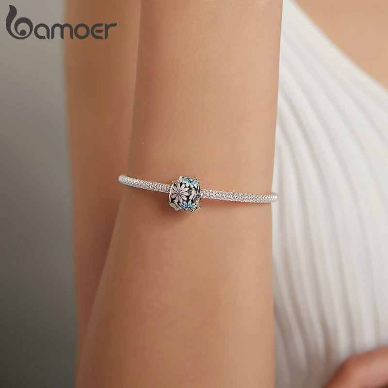 Шарм bamoer для браслета и ожерелья Женский, серебристый, с эмалью,...