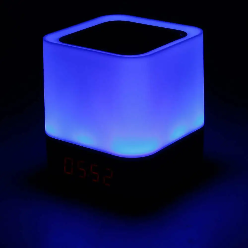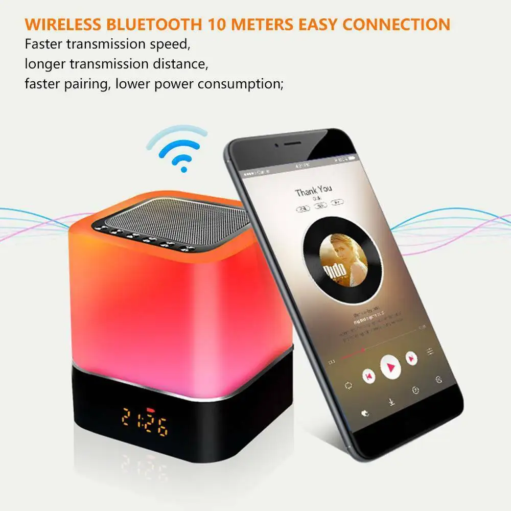 2. Простое управление: поддержка воспроизведения Bluetooth, TF-карты, просто нажмите кнопку «mode» для переключения. Когда светлый цвет горит синим в течение 3-5 секунд, он автоматически меняет цвет на розовый, фиолетовый, зеленый, оранжевый и другие цвета. Вы также можете остановить изменение цвета и оставаться на определенном цвете, просто нажмите на металл кругового датчика еще раз.