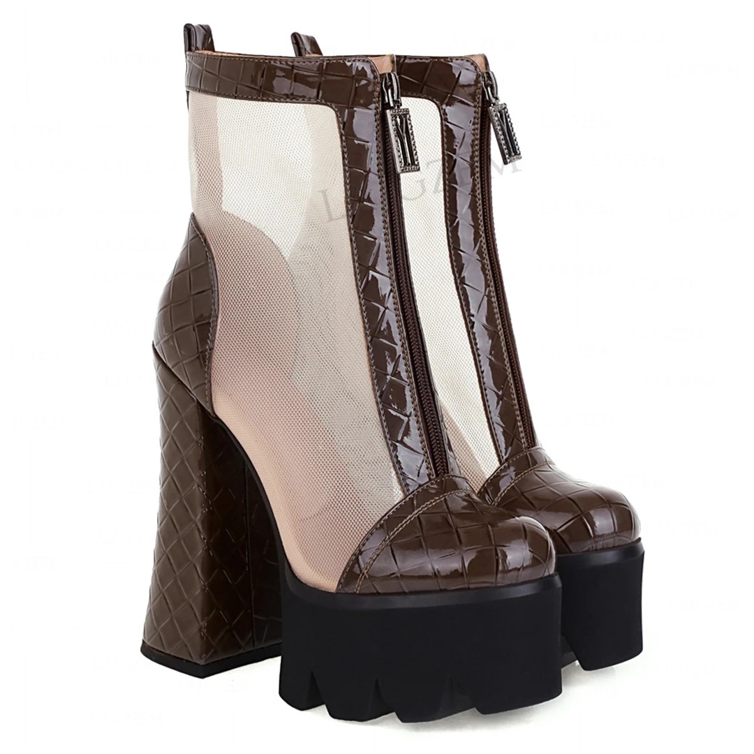Модные женские ботильоны на платформе и высоком каблуке, с боковой ...