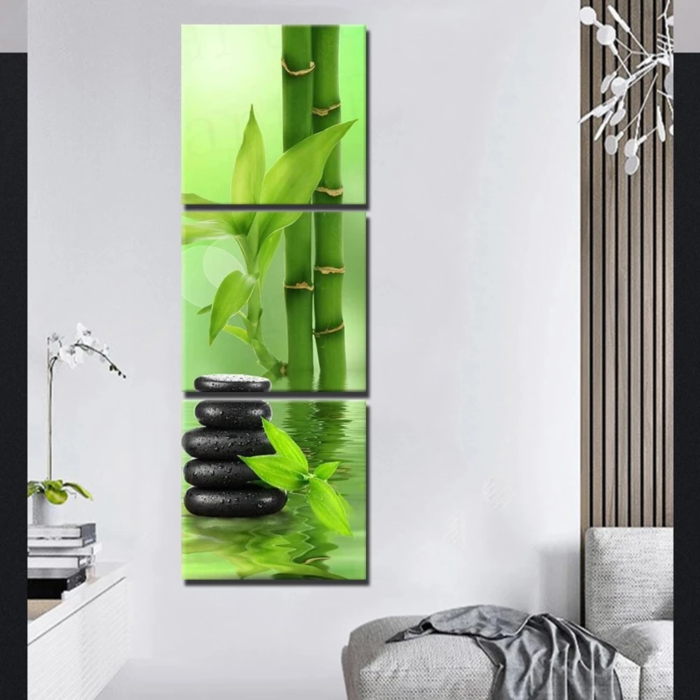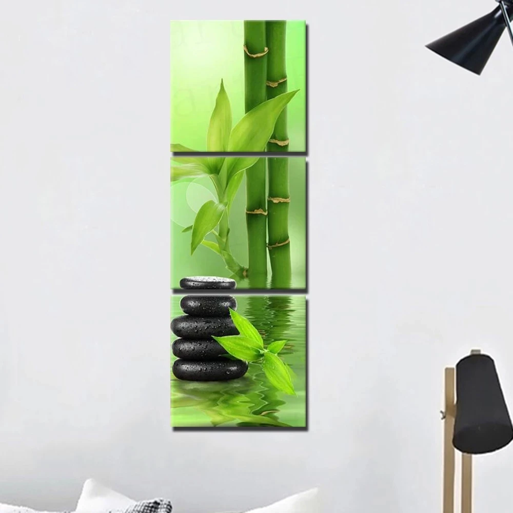 Зеленый бамбук на холсте Печать дзен 3 Панель растения тропические стены Искусство растения плакаты натюрморт картина декор комнаты