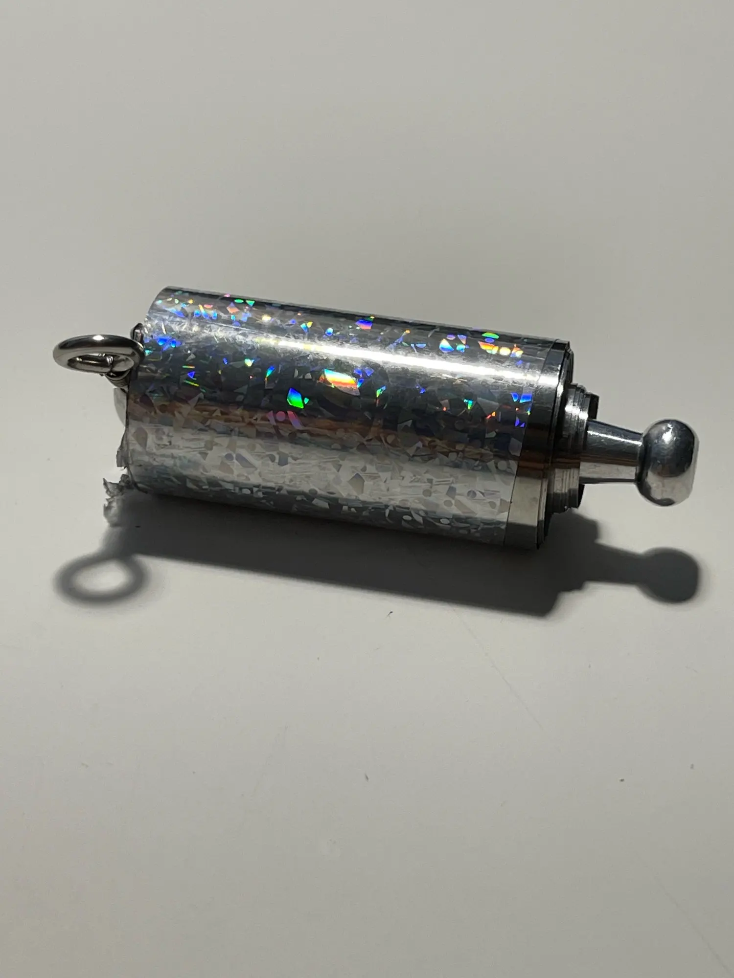 штука для фокусов. кошке понравилось с ней играть. трость представляет собой металлическую ленту закрученную в спираль. при снятии чеки лента распремляется в трость. обратный процесс довольно тугой. брал серебристую 1,3 м, можно было и поменьше взять, проще складывать обратно.