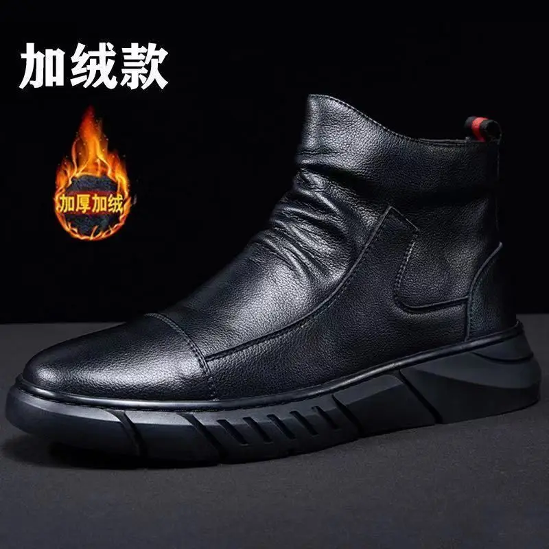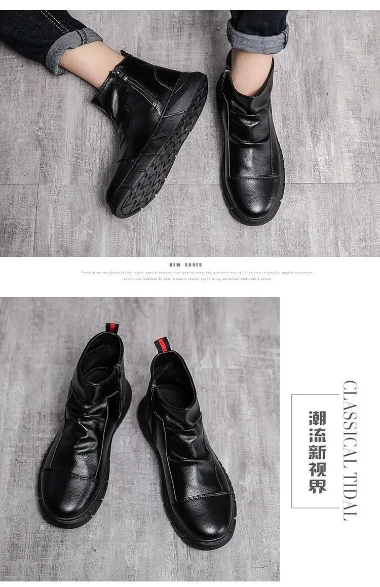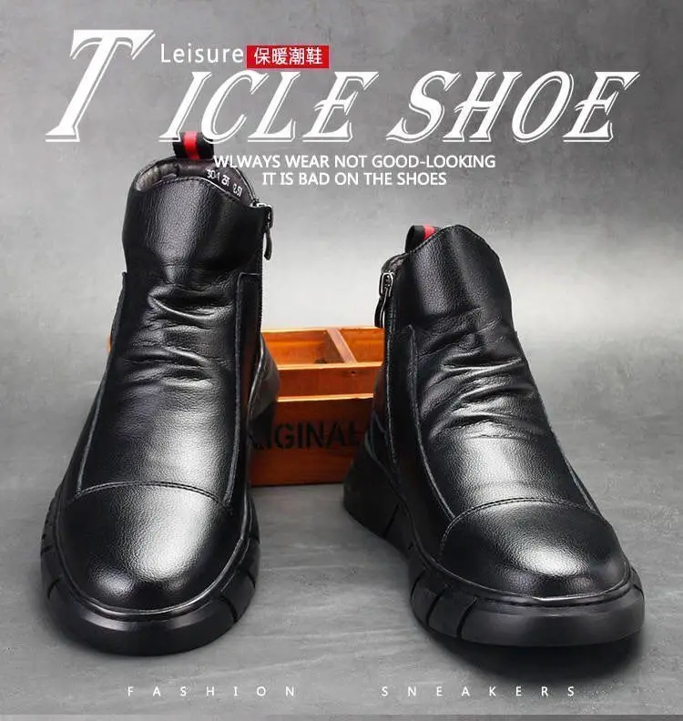 Мужские зимние ботинки, мужская кожаная обувь из ТПР прочная, долговечная подошва, 2020 г., новые модные короткие плюшевые теплые ботинки на меху, мужские ботинки