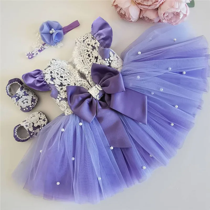 Кружевные Платья с цветочным принтом для маленьких девочек, детский Свадебный костюм принцессы с милым бантом, вечерняя детская юбка-пачка, летняя одежда для дня рождения, От 1 до 5 лет