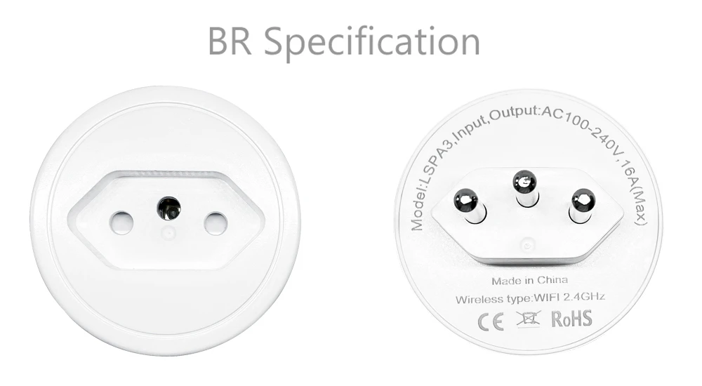 Умная вилка 16A BR бразильская Розетка WiFi Tuya Smart Life с Alexa Google Home Assistant голосовой синхронизацией