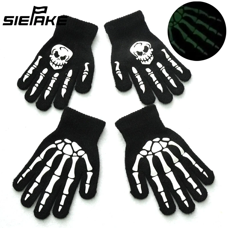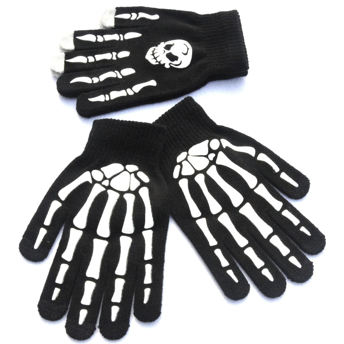 Световой печати флуоресцентный черепа вязаные перчатки эмо осень-зима черный Фитнес перчатки для мужчин и женщин в день всех святых