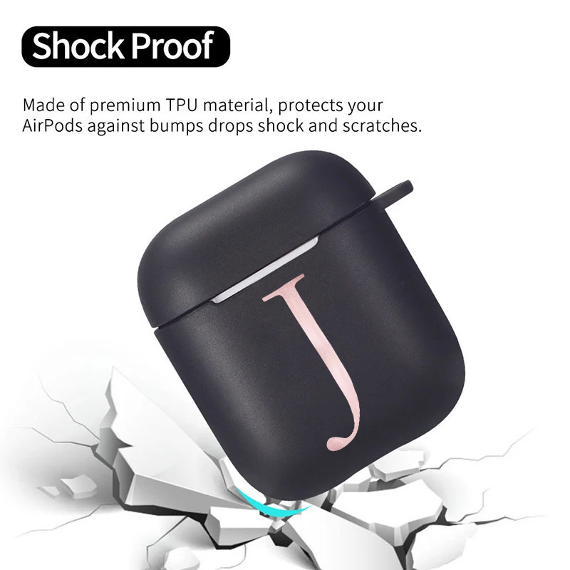 Элегантный 26 A-Z алфавитные буквы принт черный силиконовый чехол для Apple Airpods на возраст 1, 2, чехол с заглавной буквы мягкая гарнитура для Airpods крышка