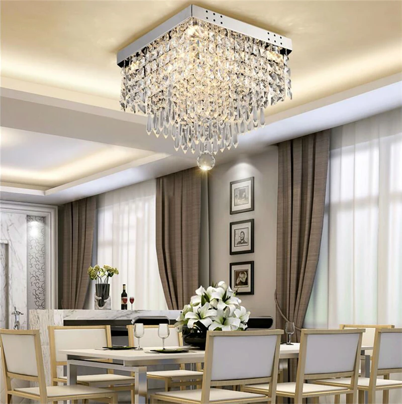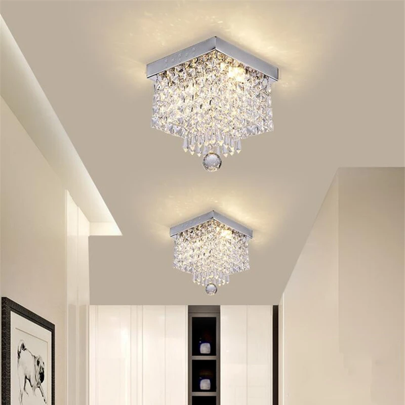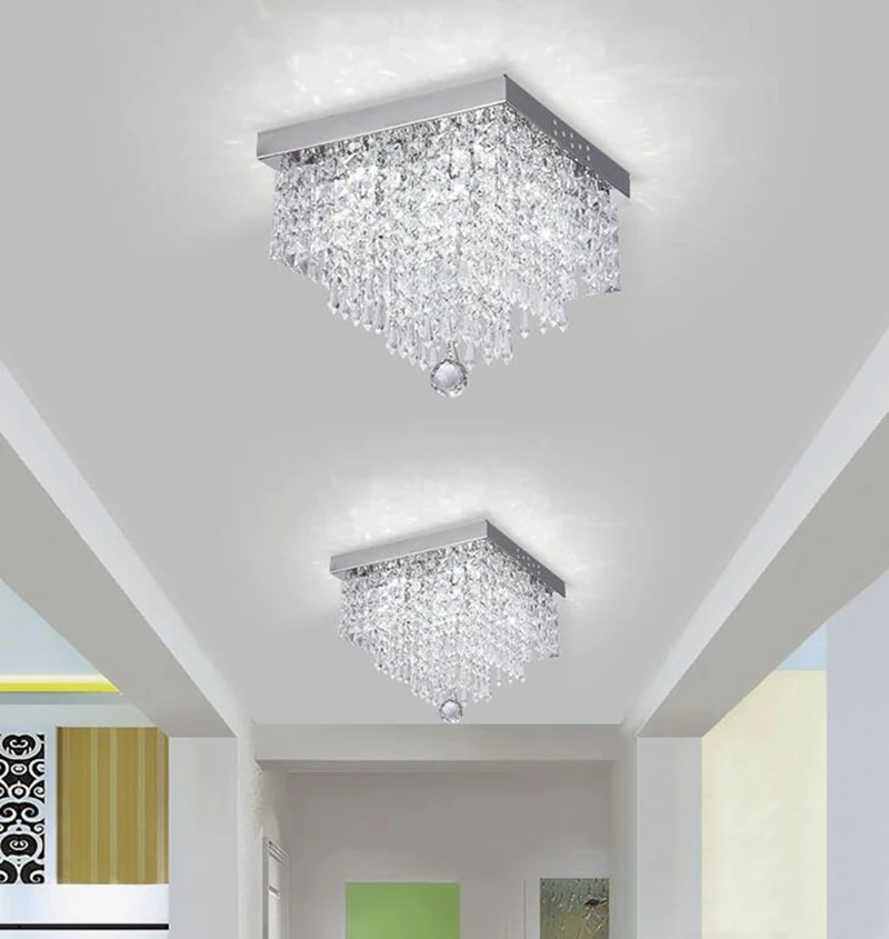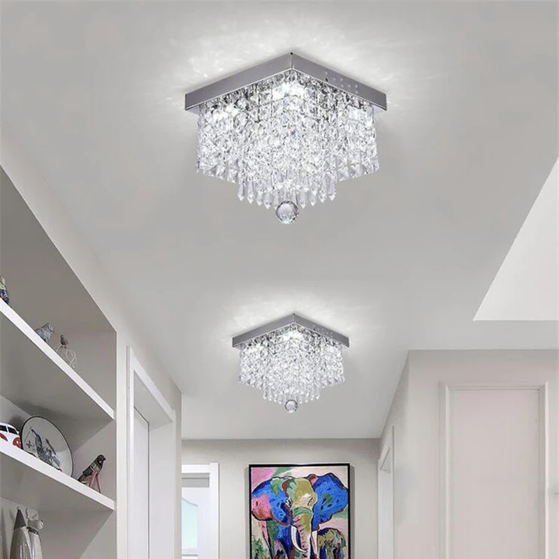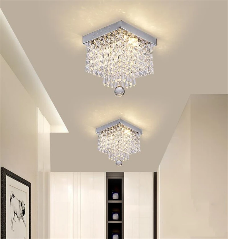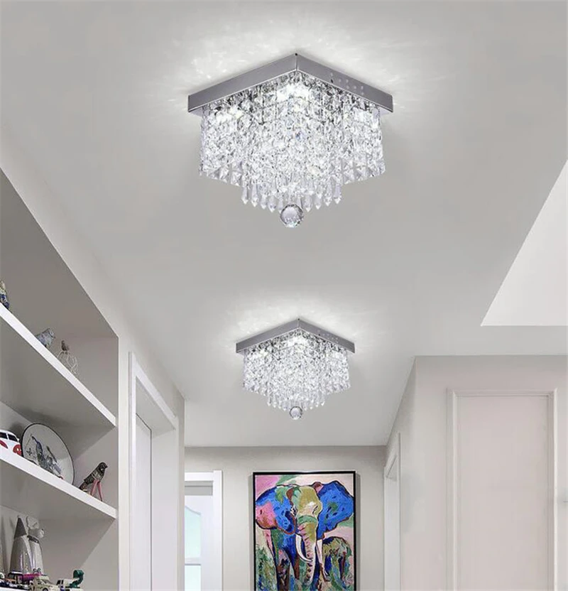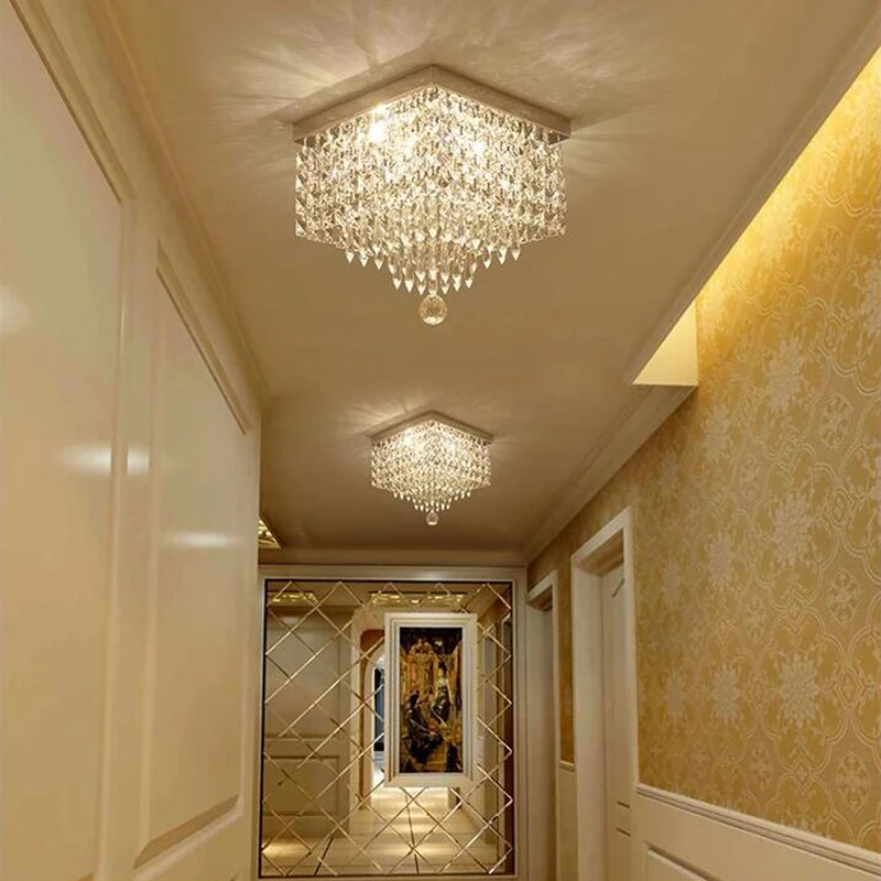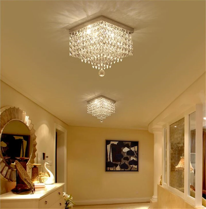 Модный с кристаллами Потолочная люстра, современная хрустальная Потолочная люстра, металлическая люстра, квадратная Светодиодная лампа для прихожей