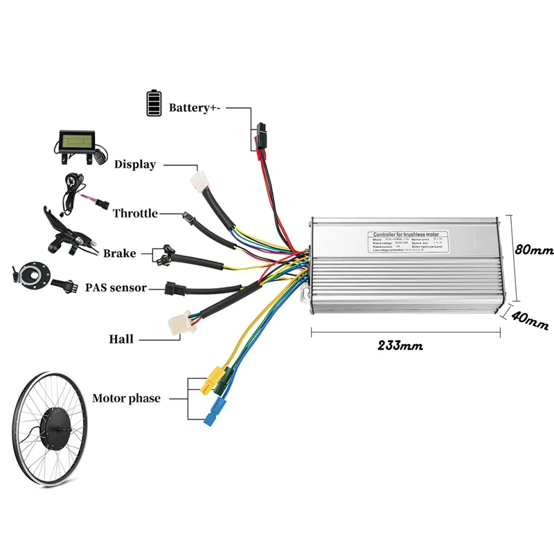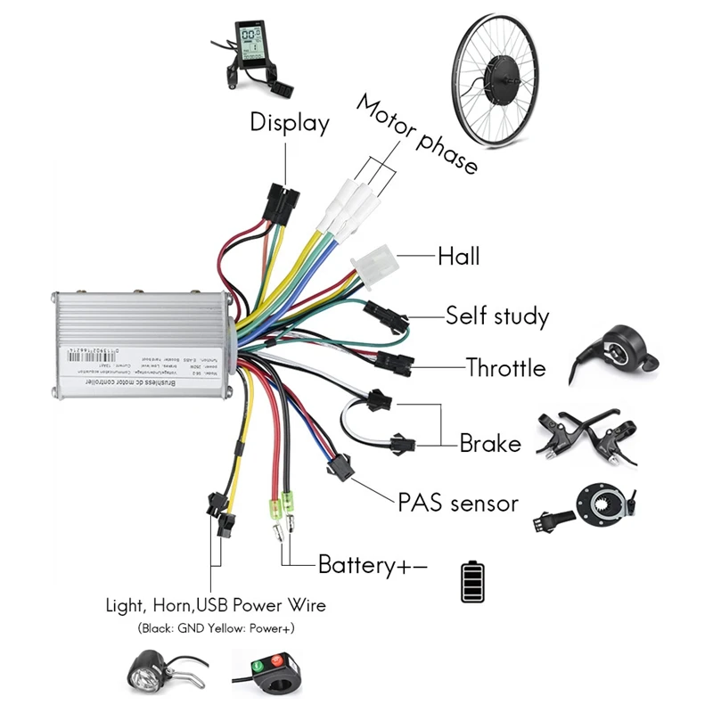 -24v-48V 15A бесщеточным Мотором контроллер с передними фарами функции.
