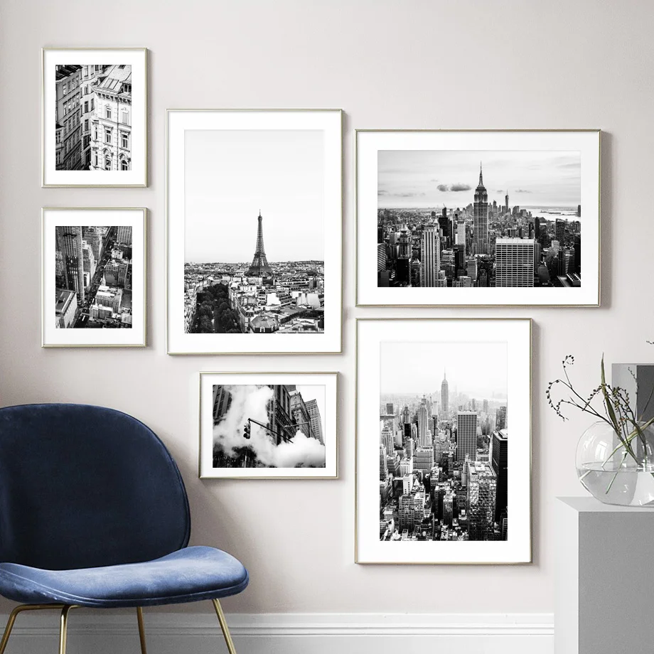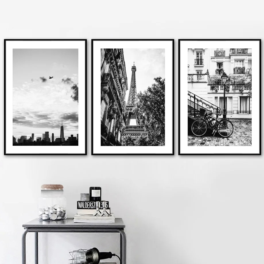 Черно-Белая настенная Картина на холсте Парижская башня Бруклинский мост городская архитектура пейзаж плакаты внутренние картины