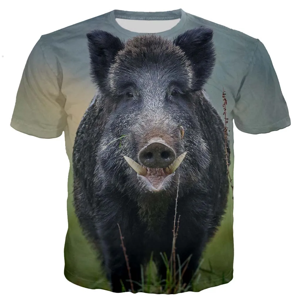 Футболка с 3D-принтом дикого кабана для мужчин и женщин, стильная т...