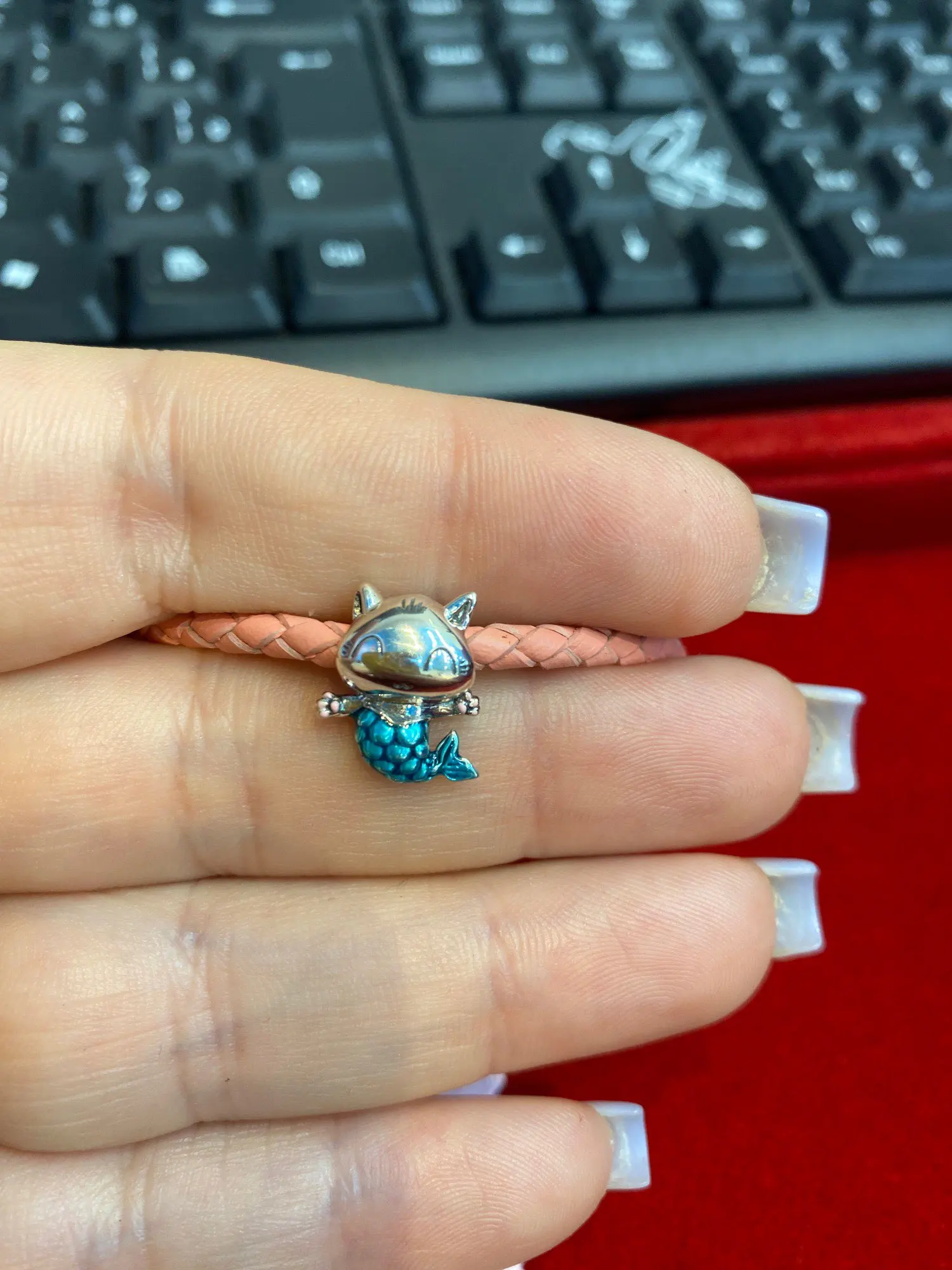 Bamoer 925 пробы Серебряный котенок амулет-Русалка с синей эмалью кулон из бисера для оригинального браслета браслет сделай сам для девочек SCC1852