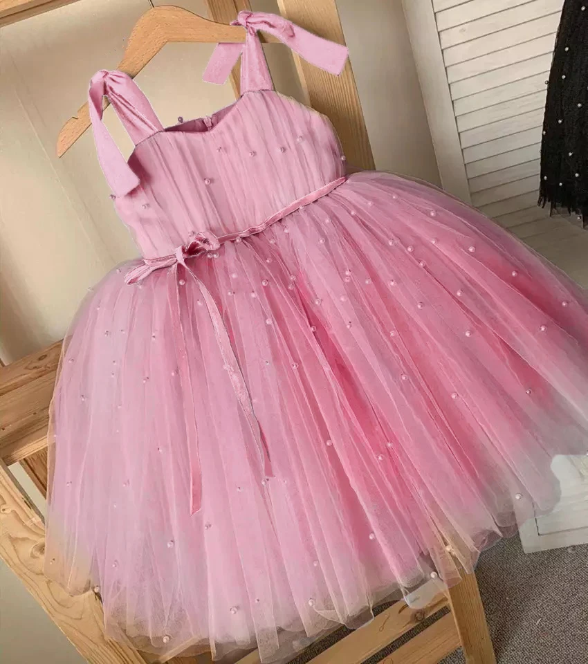 Летнее платье на бретельках для девочек, праздвечерние чное платье принцессы Eleagnt с пачкой и цветами, свадебные платья для девочек, дизайн с жемчужинами, детская одежда, детская одежда