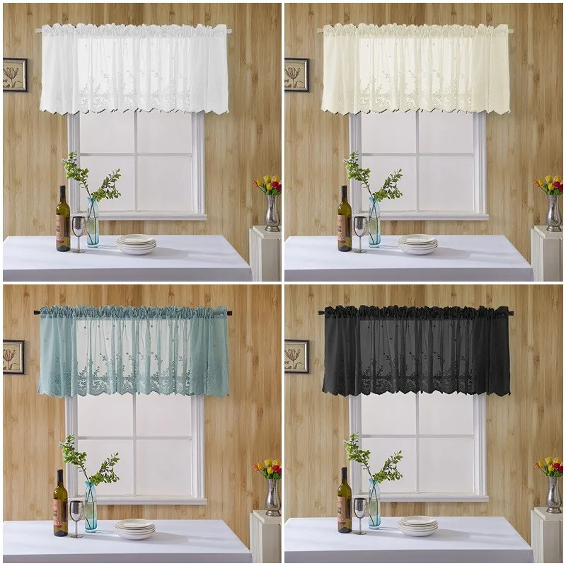 Цветочная Короткая занавеска для кухни, гостиной, кружевная полузанавеска на окно в виде кофе, прозрачная драпировка из тюля, украшение для дома