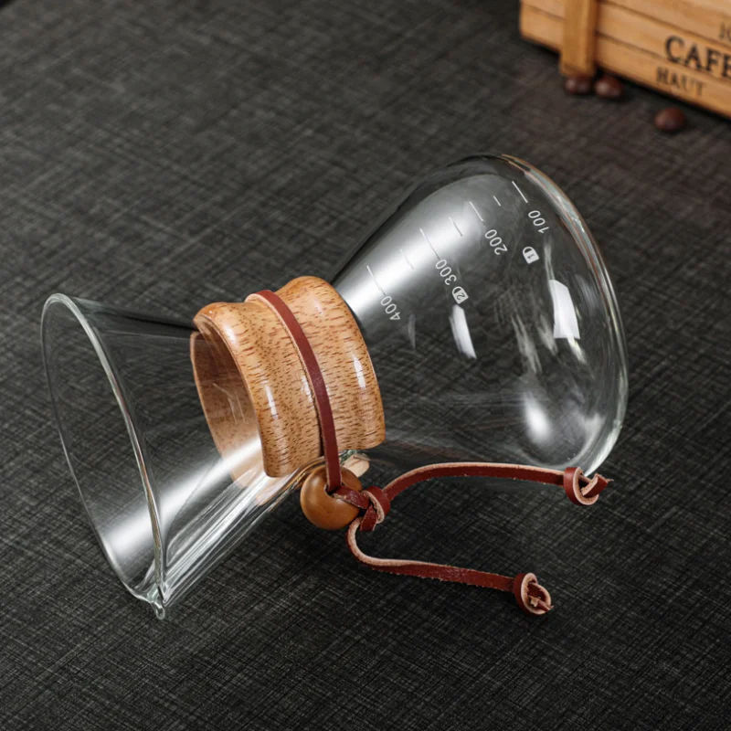 Классический стеклянный кофейник V60, капельница с деревянной ручко...