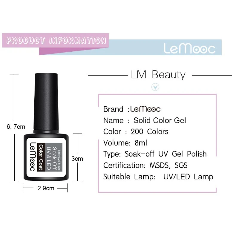 Гель-лак для ногтей LEMOOC, 8 мл, серия УФ светодиодный лак для ногтей, УФ-гель для ногтей, Блестящие Блестки, удаляемый замачиванием