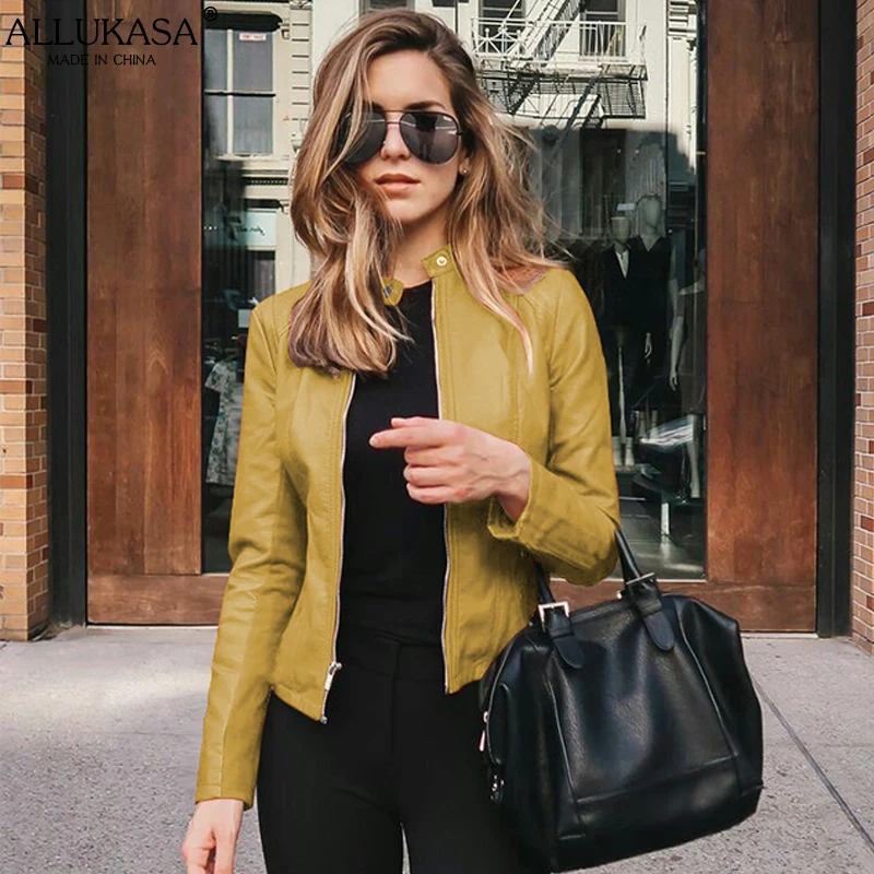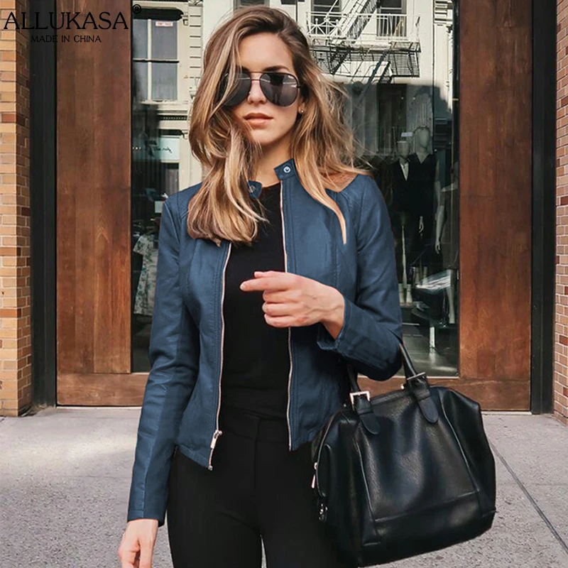 Модные женские пальто из искусственной кожи Allukasa с длинными рукавами, Женский Повседневный кардиган на молнии на осень и зиму, уличная одежда, элегантная кожаная куртка