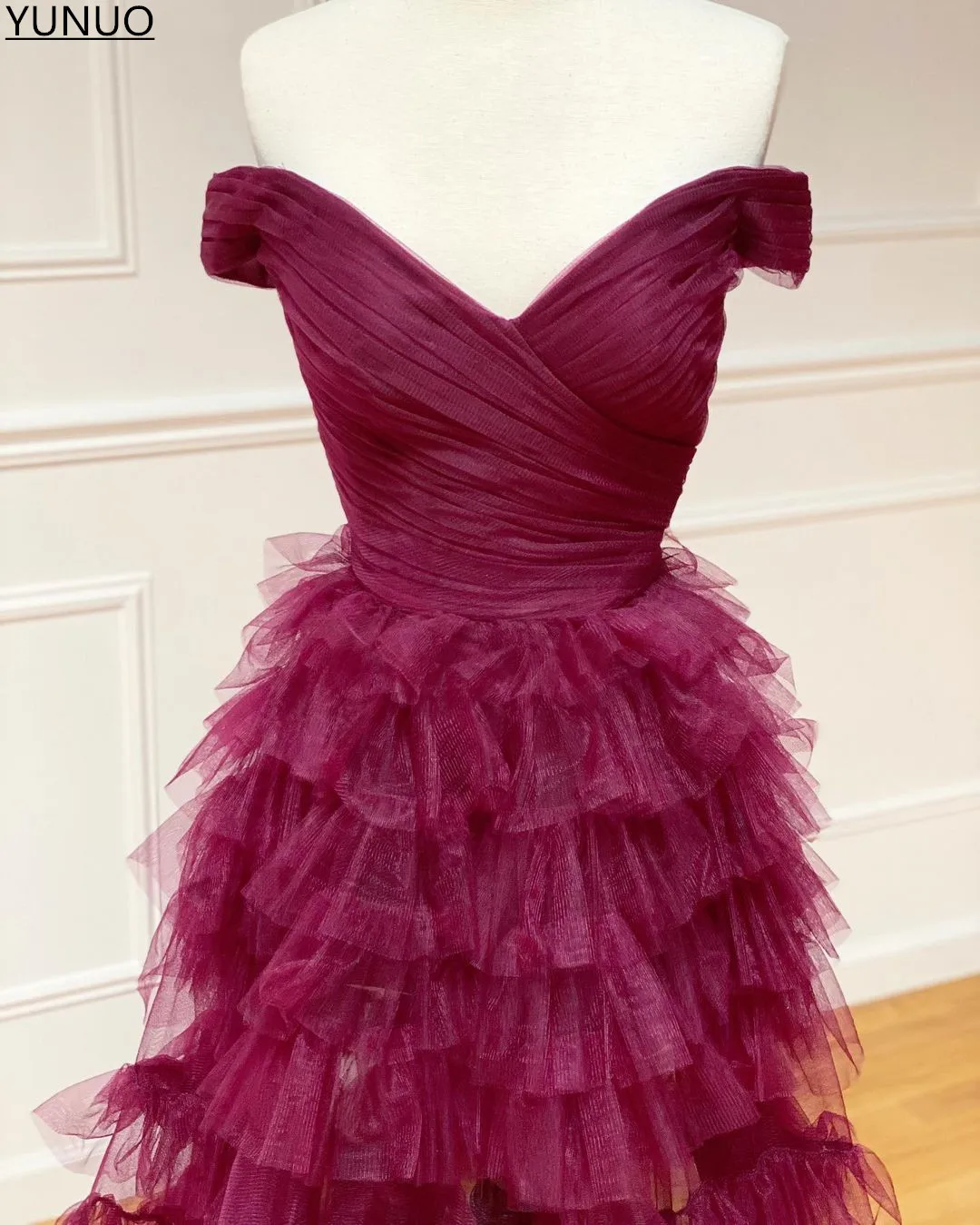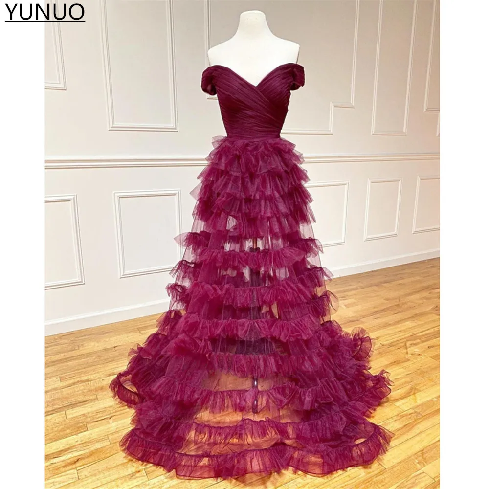 Женское вечернее платье YUNUO, Многоярусное Тюлевое ТРАПЕЦИЕВИДНОЕ платье с открытыми плечами для выпускного вечера, длинное платье на молнии