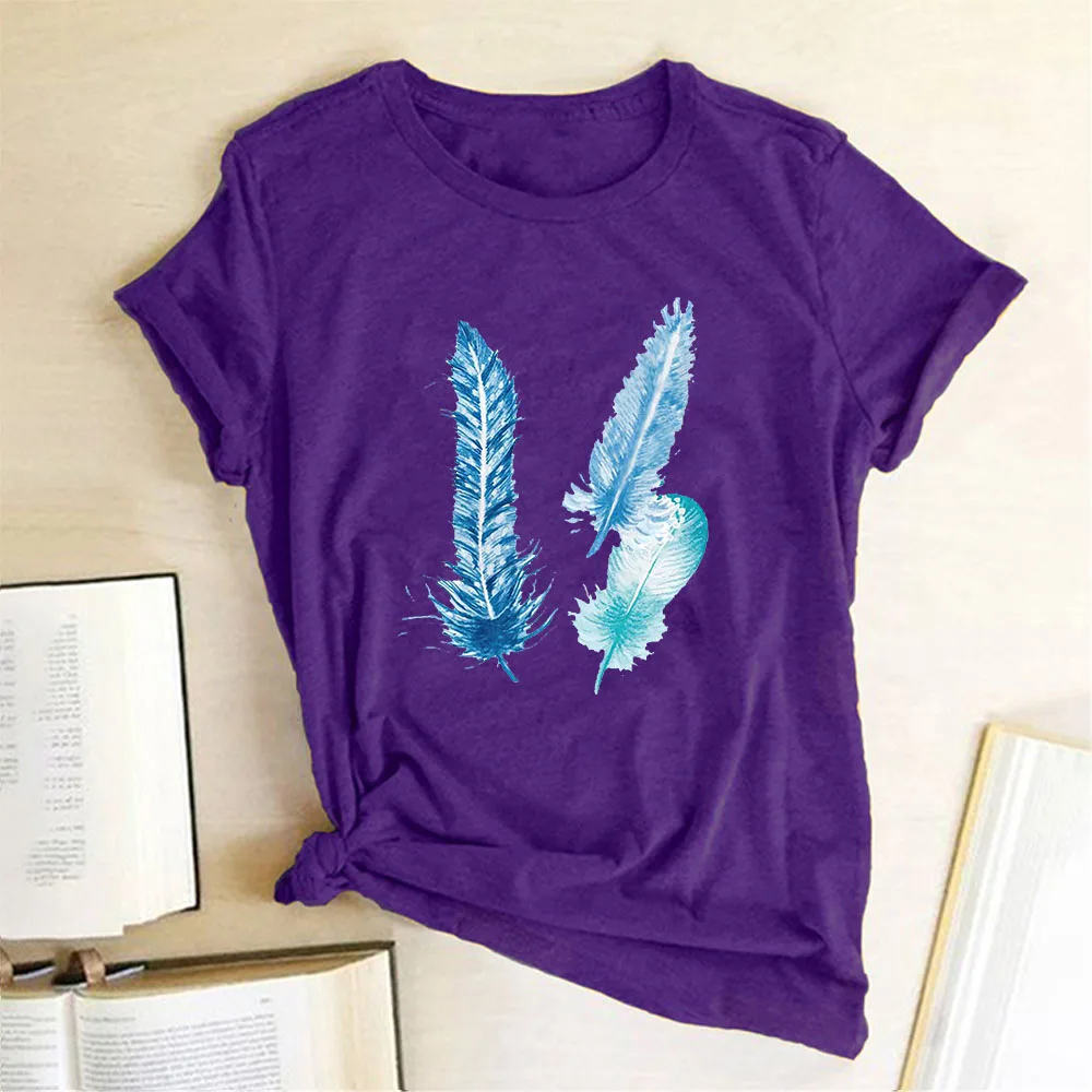 Женские футболки с принтом перьев, женские футболки с коротким рукавом 90s, женские топы, футболки, летняя свободная одежда Harajuku Haut Femme