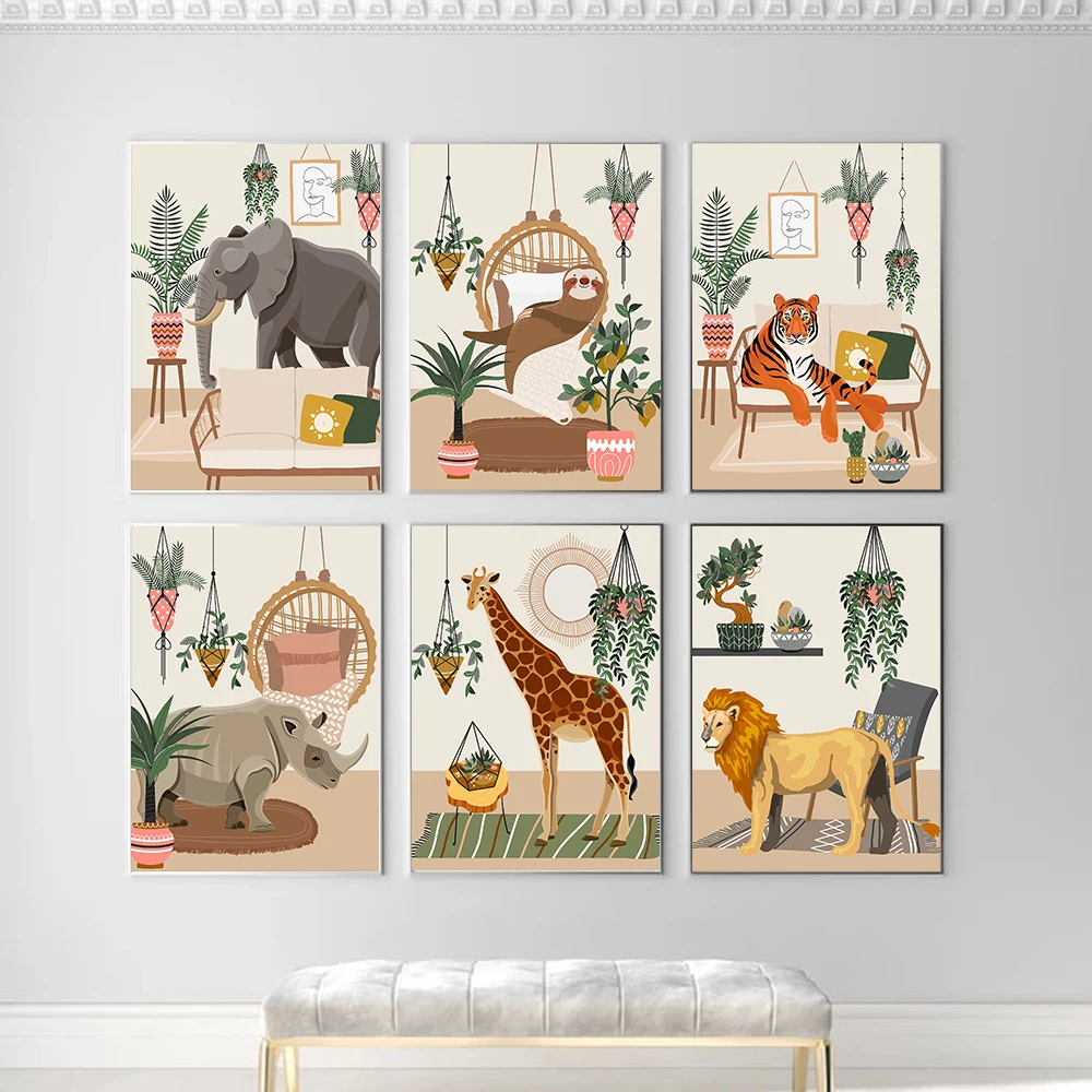 Плакаты и холсты с изображением диких джунглей, жирафа, льва, тигра, Ленивца, носорога, декоративная живопись, настенные картины, домашний декор
