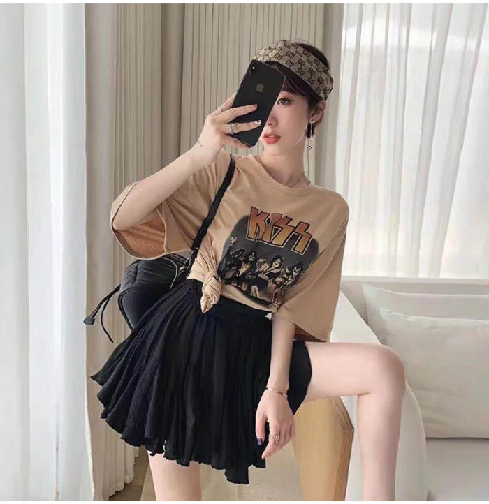 Юбка-шорты женская шифоновая с завышенной талией, модная плиссированная мини-юбка-пачка в Корейском стиле, черно-белая, лето 2022