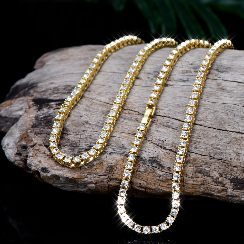 4 мм цепи из нержавеющей стали AAA Циркон 1 ряд теннис цепи Цепочки и ожерелья Для мужчин хип-хоп ювелирные изделия из золота Подвески серебряного цвета