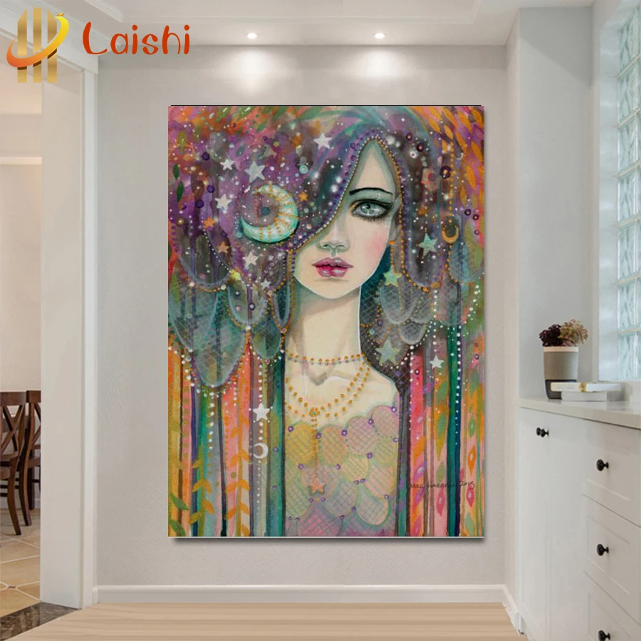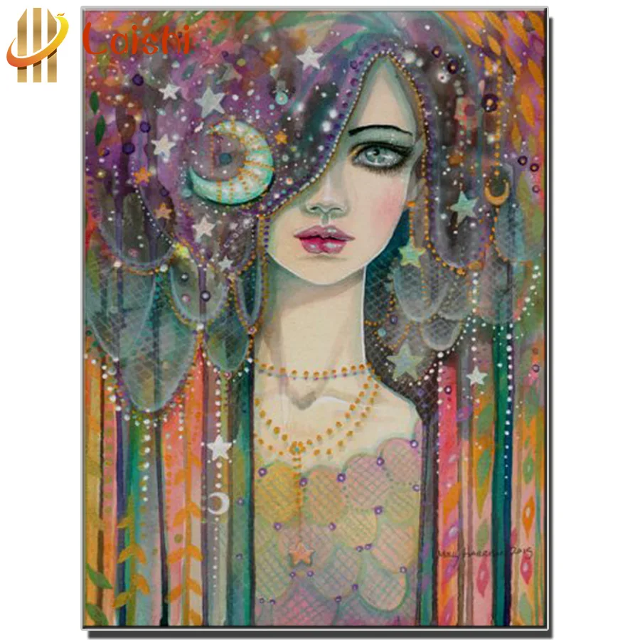 Алмазная живопись "сделай сам", красивая Цыганская девушка в стиле бохо, Фантастическое искусство, Постер женщины, вышивка крестиком, полностью квадратная алмазная живопись