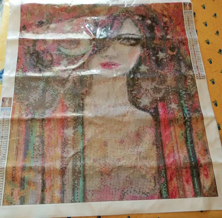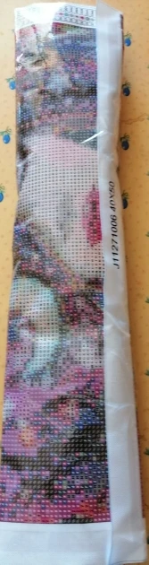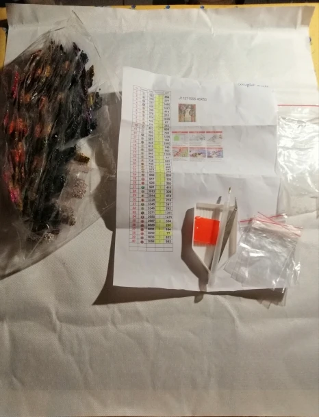 Холст прибыл в большом пузырьковом конверте. Холст свернут сам по себе с помощью алмазного кармана внутри и скотч на прозрачной защите. Холст пострадал в поездке. Бриллианты в комплекте, 1 кошелек и базовый набор для установки с небольшими прозрачными пакетами. Продавец порекомендовал, потому что Доставка за 17 дней