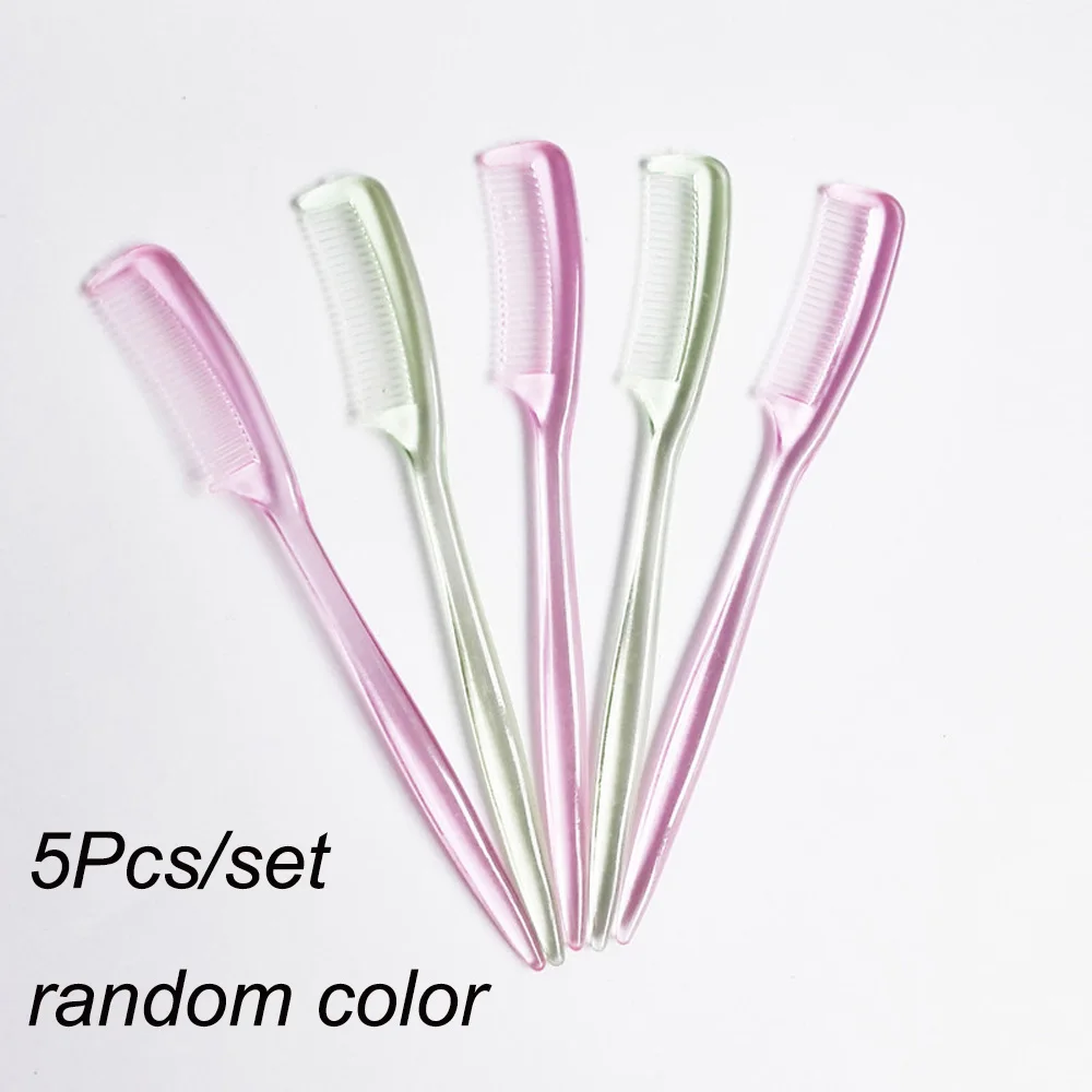 Щетка для бровей и ресниц, маленький пластиковый гребень для бровей, инструменты для красоты, 5 шт., случайный цвет