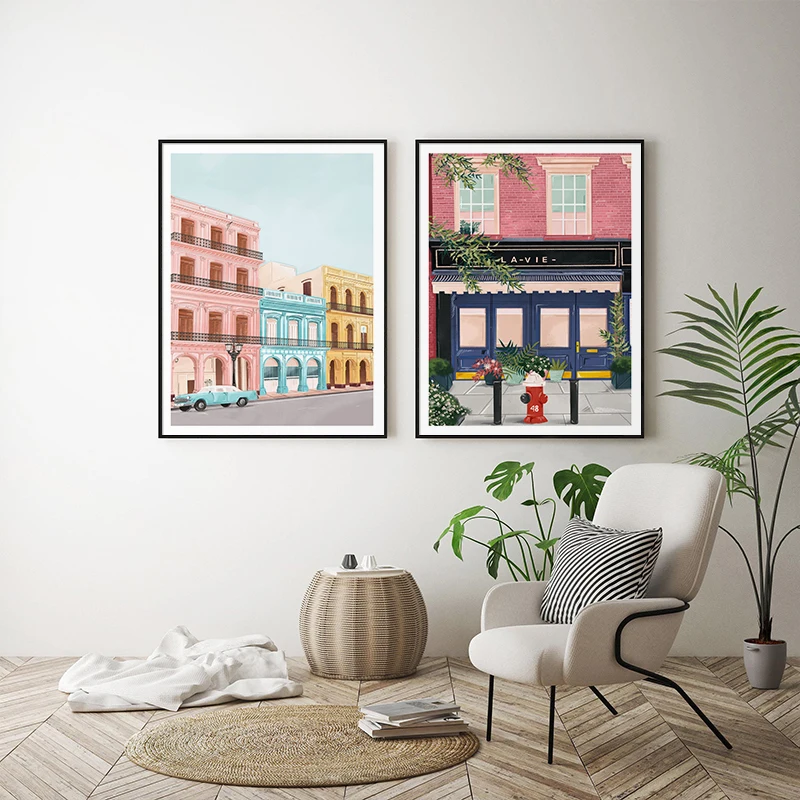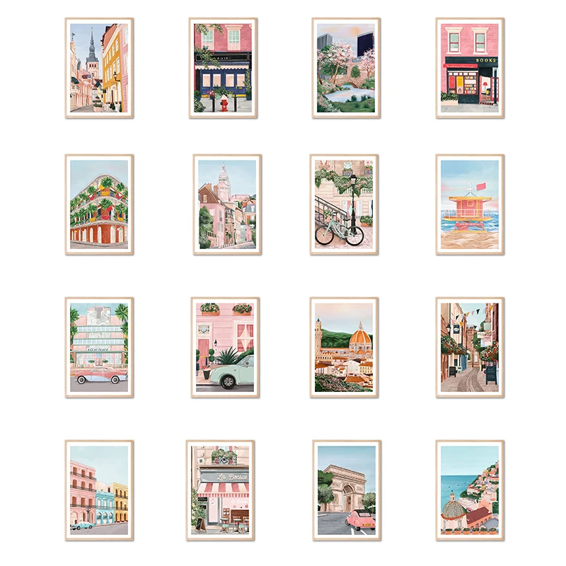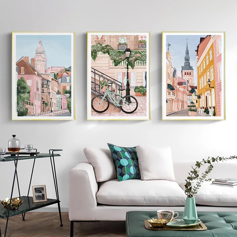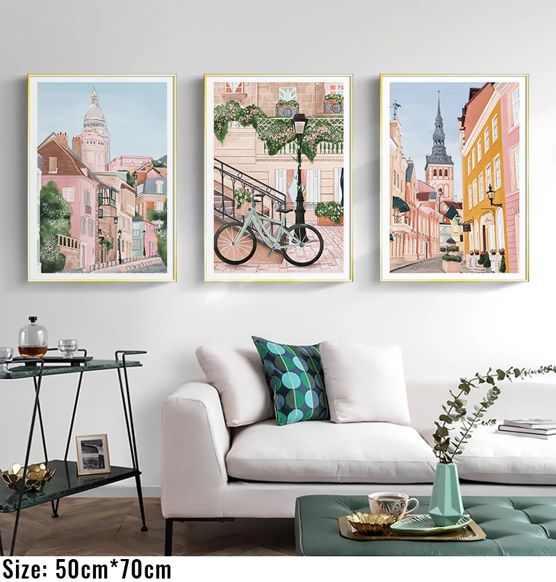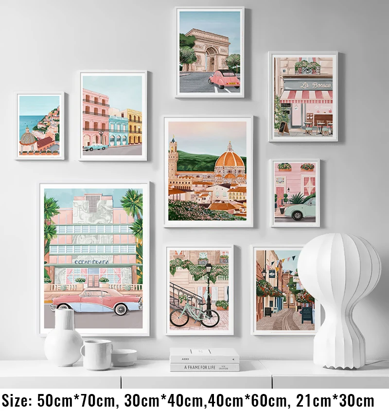 Туристический город мультфильм плакат Италия Нью-Йорк Париж Лондон Пейзаж Холст Картина Печать настенные художественные фотографии Гостиная домашний декор