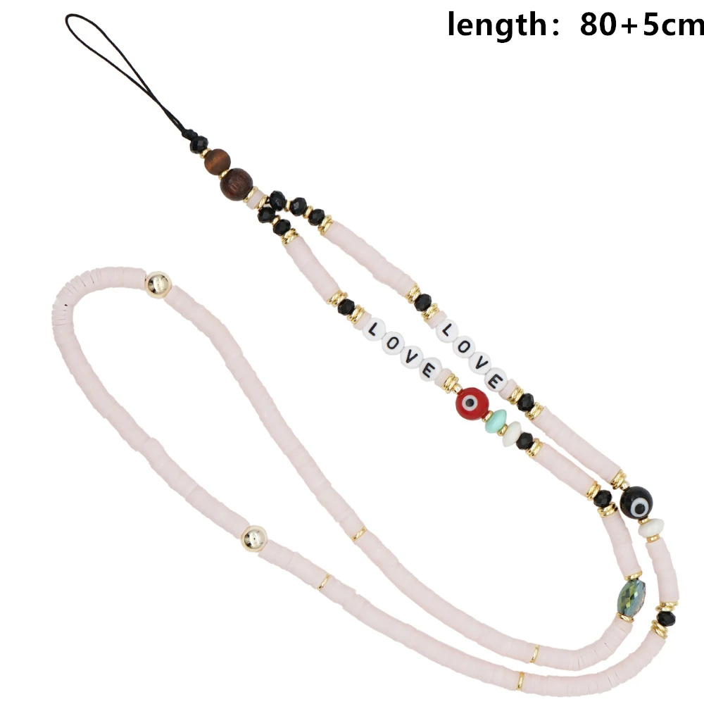 HUANZHI 2021 телефонные бусины сглаза сотовый телефон ремешок любовь буква Холтер шея анти-потеря искусственный ремешок для женщин ювелирные изделия подарок