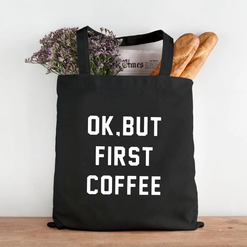 Холщовые сумки для покупок First Coffee, женские тканевые мешки на плечо с принтом для мам, многоразовые мешки для учеников, школьные портфели